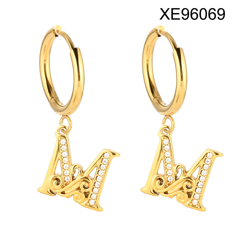 Level B Stainless Steel New Trendy Women Jewelry Letter M Golden Hoop Earrings