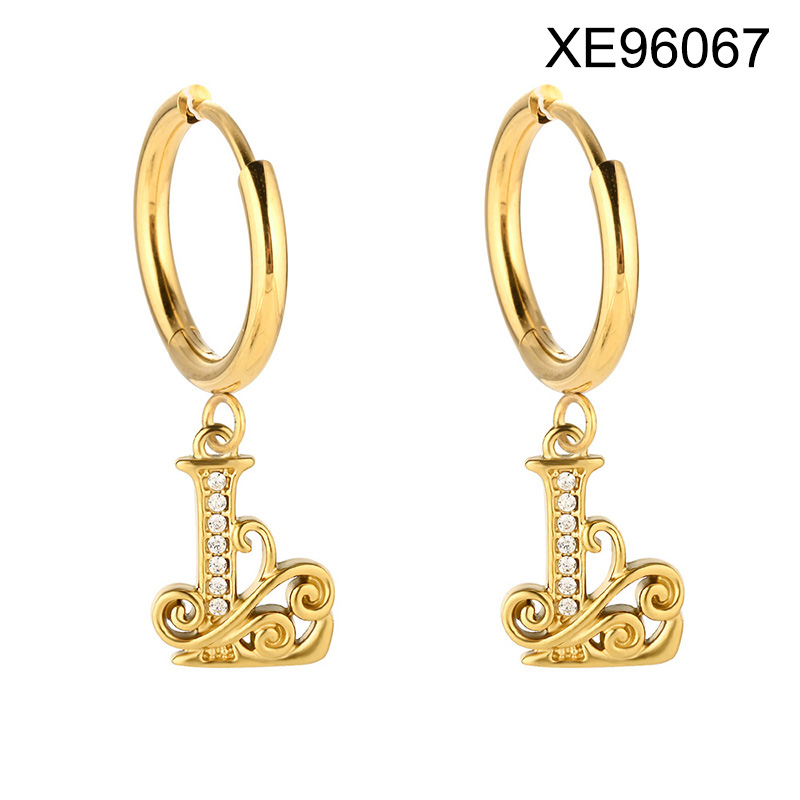 Level B Stainless Steel New Trendy Women Jewelry Letter L Golden Hoop Earrings