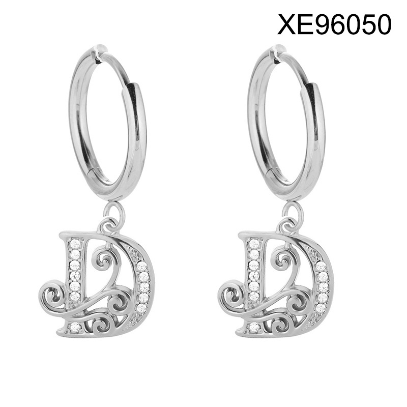 Level B Stainless Steel New Trendy Women Jewelry Letter D Steel color Hoop Earrings
