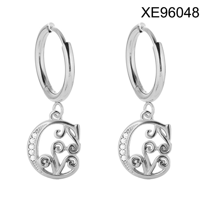 Level B Stainless Steel New Trendy Women Jewelry Letter E Steel color Hoop Earrings