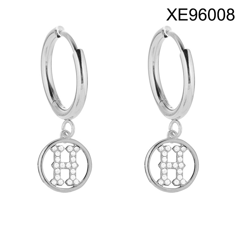 Level B Stainless Steel New Trendy Women Jewelry Letter H Steel color Hoop Earrings