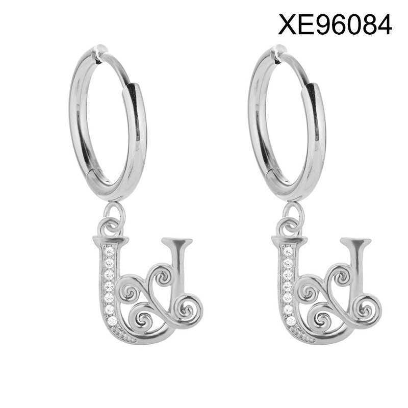 Level B Stainless Steel New Trendy Women Jewelry Letter U Steel color Hoop Earrings