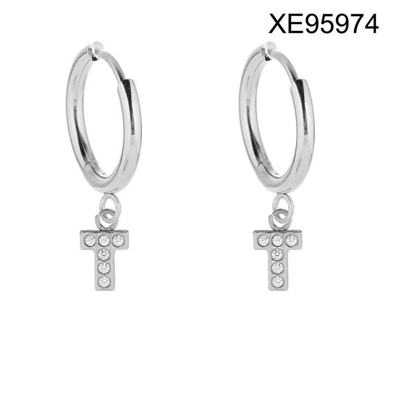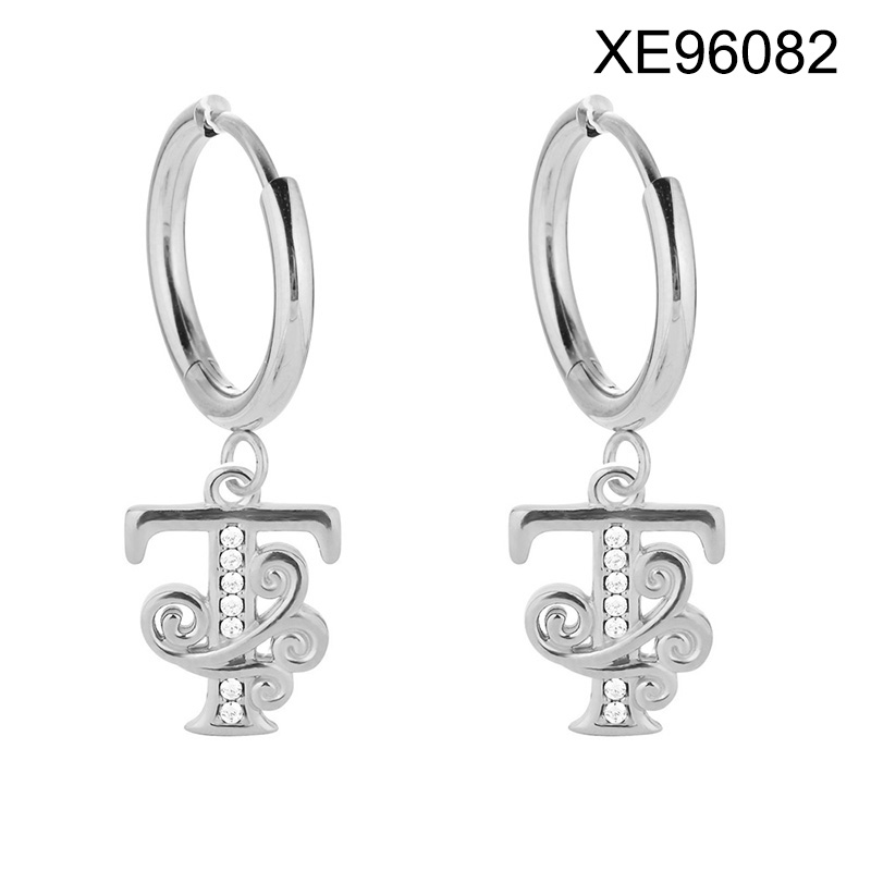 Level B Stainless Steel New Trendy Women Jewelry Letter T Steel color Hoop Earrings