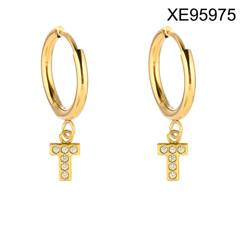 Level B Stainless Steel New Trendy Women Jewelry Letter T Golden Hoop Earrings