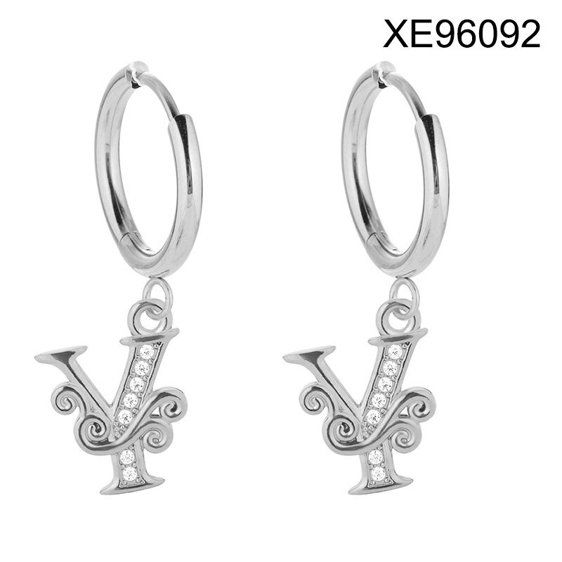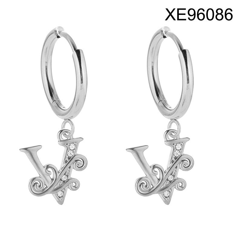 Level B Stainless Steel New Trendy Women Jewelry Letter V Steel color Hoop Earrings