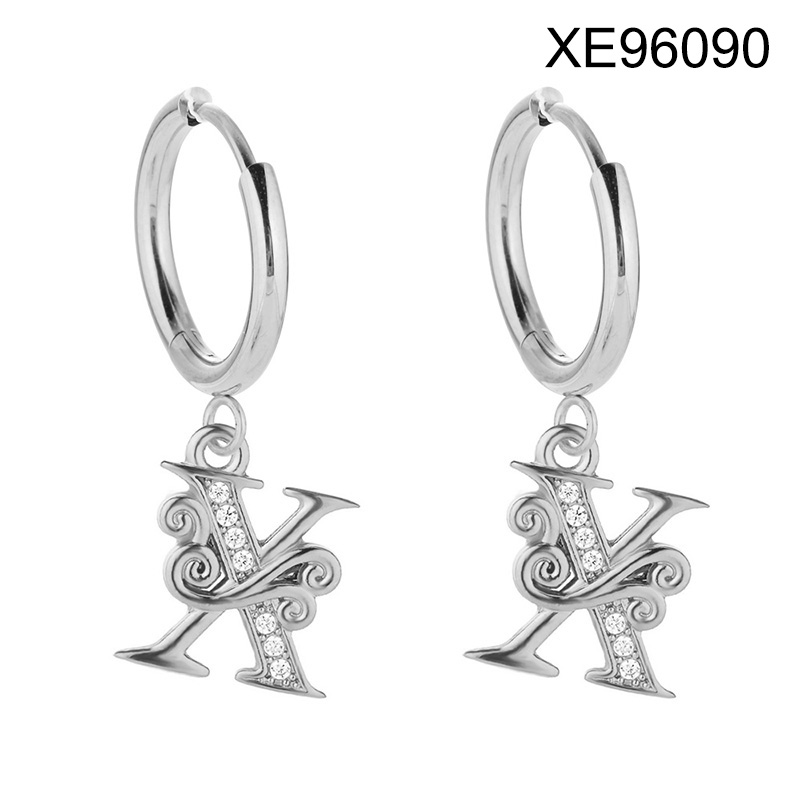 Level B Stainless Steel New Trendy Women Jewelry Letter X Steel color Hoop Earrings
