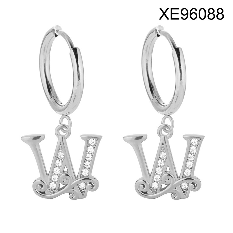 Level B Stainless Steel New Trendy Women Jewelry Letter W Steel color Hoop Earrings