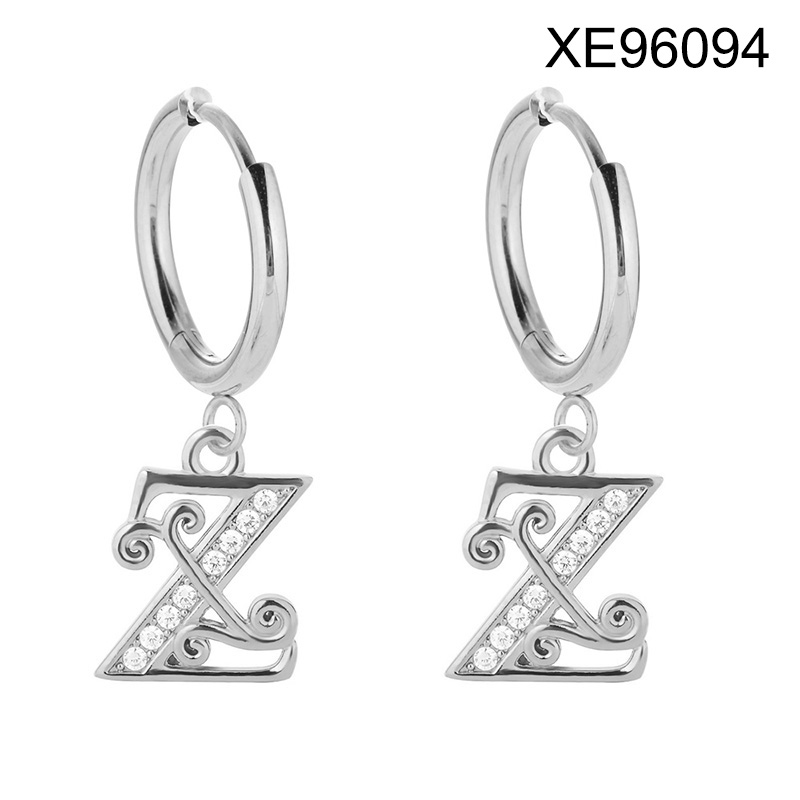 Level B Stainless Steel New Trendy Women Jewelry Letter Z Steel color Hoop Earrings