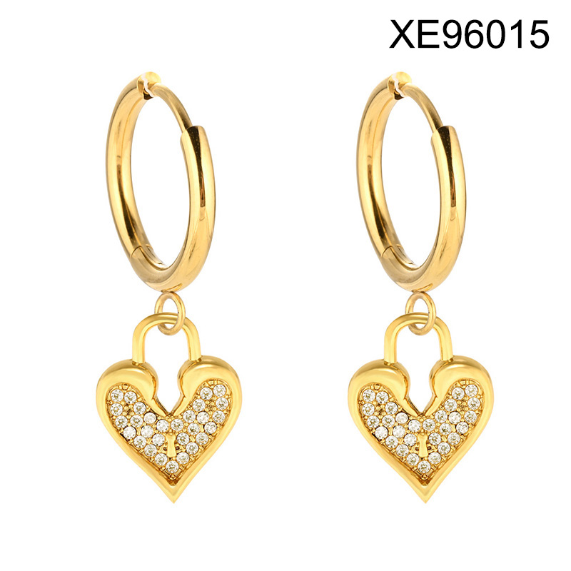 Level B Stainless Steel New Trendy Women Jewelry Lock Heart Golden Valentine's Day Hoop Earrings