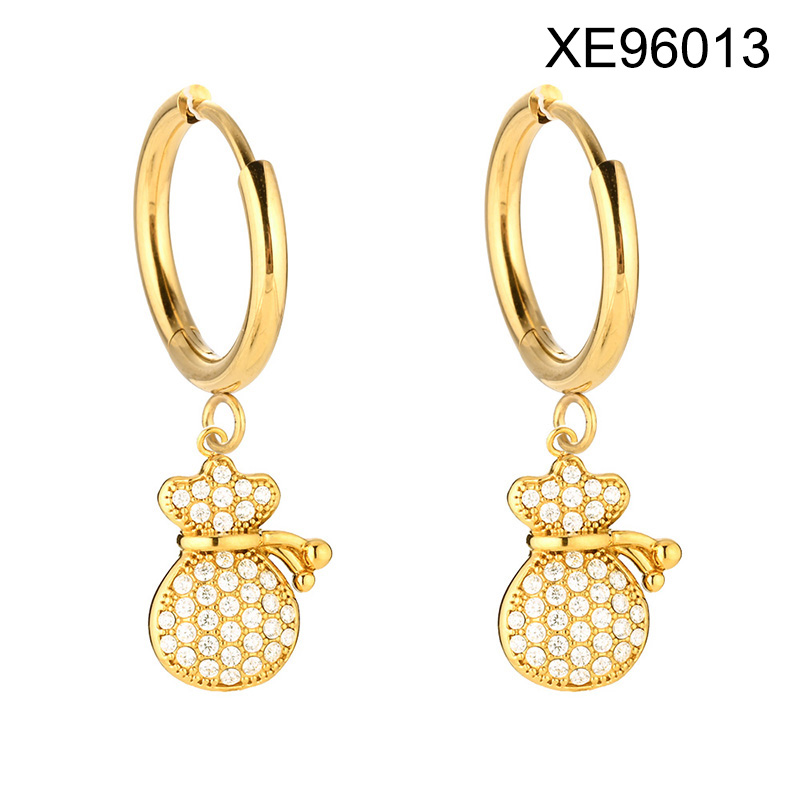 Level B Stainless Steel New Trendy Women Jewelry Money bag Golden Hoop Earrings
