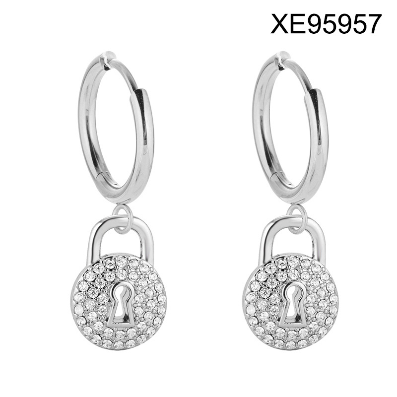 Level B Stainless Steel New Trendy Women Jewelry Lock Luck Steel color Hoop Earrings