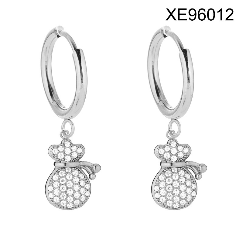 Level B Stainless Steel New Trendy Women Jewelry Money bag Steel color Hoop Earrings