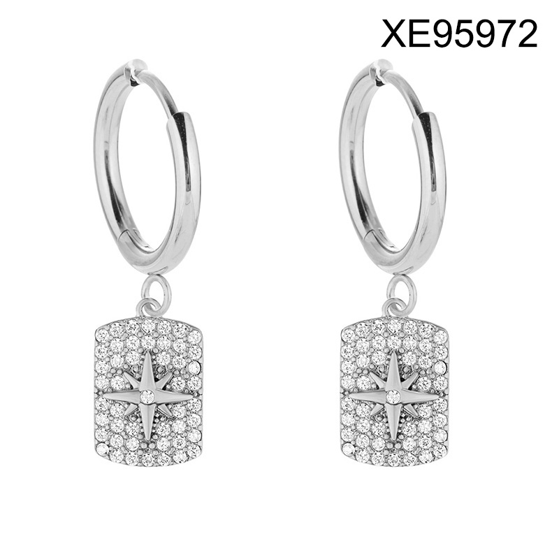Level B Stainless Steel New Trendy Women Jewelry Eight-Pointed Star Steel color Hoop Earrings