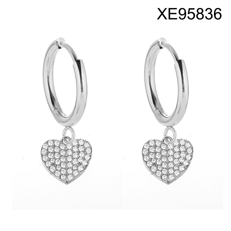 Level B Stainless Steel New Trendy Women Jewelry Heart Steel color Mother's Day Hoop Earrings