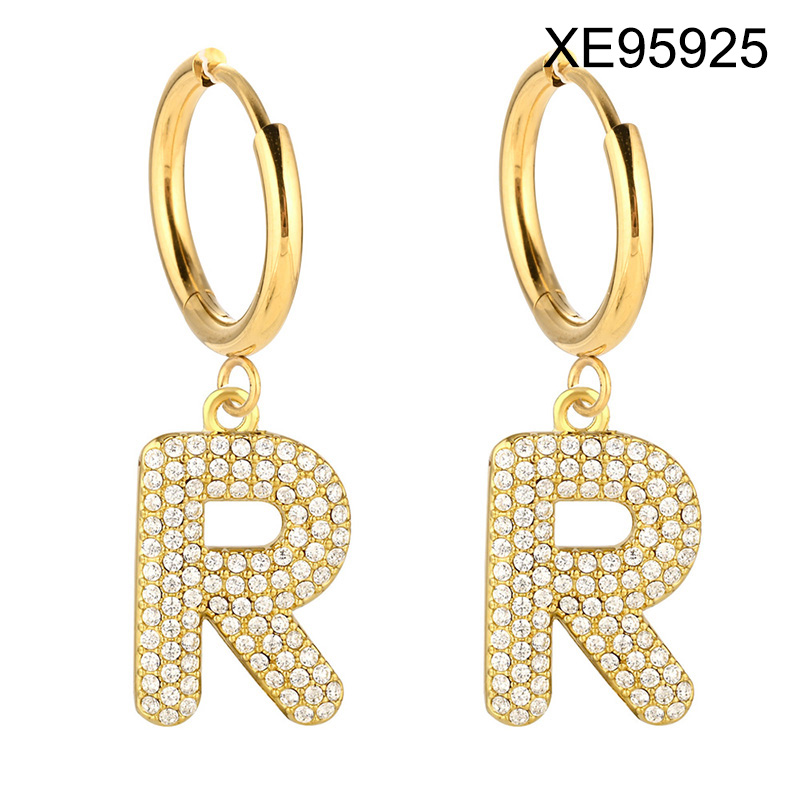 Level B Stainless Steel New Trendy Women Jewelry Letter R Golden Hoop Earrings