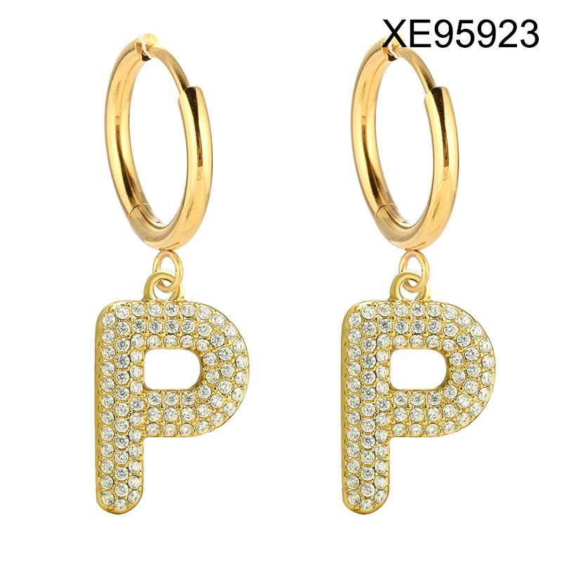 Level B Stainless Steel New Trendy Women Jewelry Letter P Golden Hoop Earrings