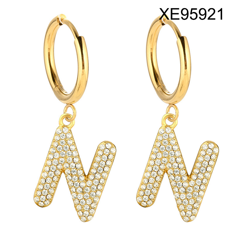 Level B Stainless Steel New Trendy Women Jewelry Letter N Golden Hoop Earrings