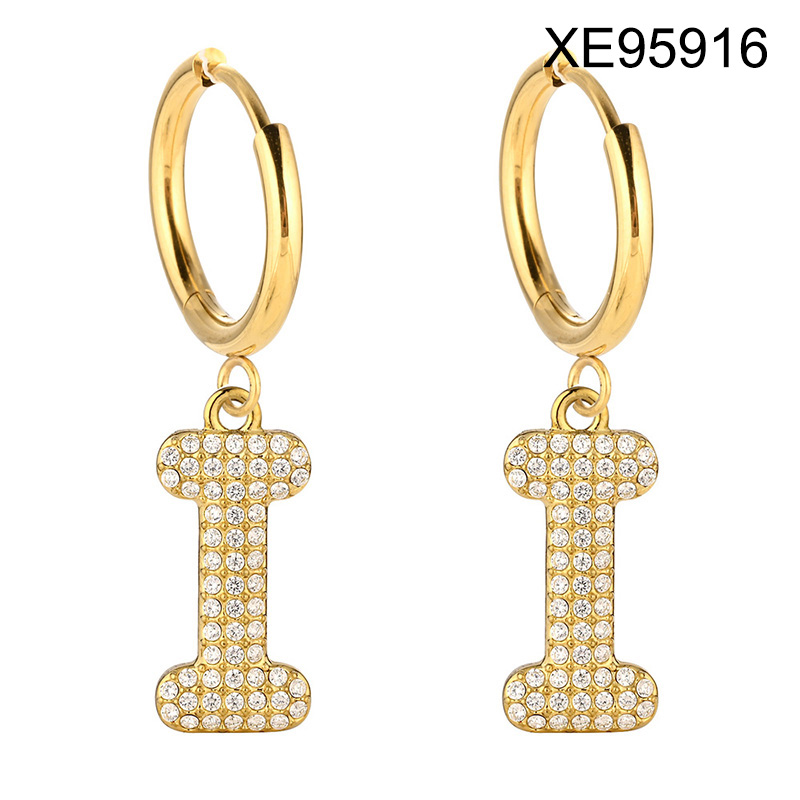 Level B Stainless Steel New Trendy Women Jewelry Letter I Golden Hoop Earrings
