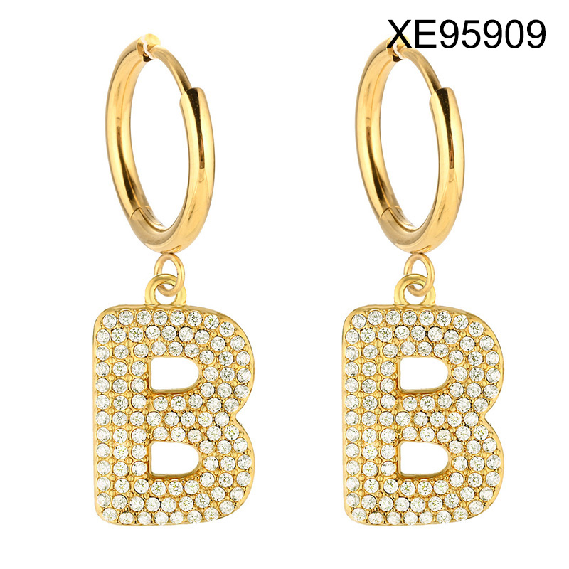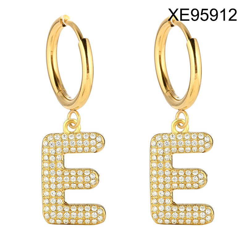 Level B Stainless Steel New Trendy Women Jewelry Letter E Golden Hoop Earrings