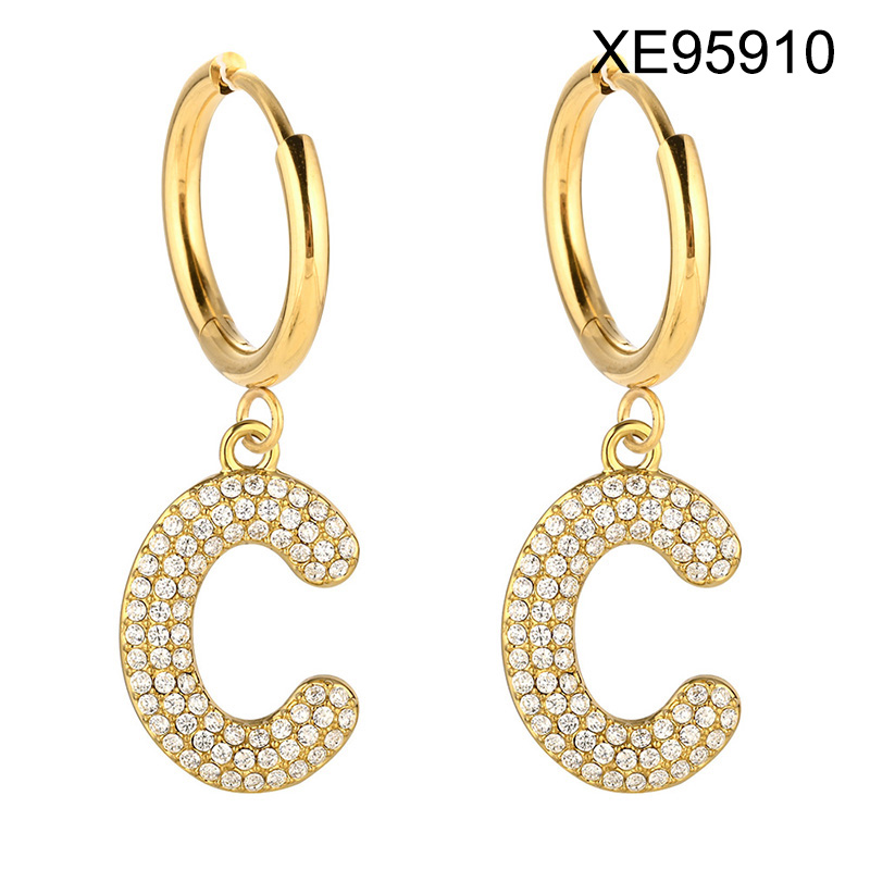 Level B Stainless Steel New Trendy Women Jewelry Letter C Golden Hoop Earrings