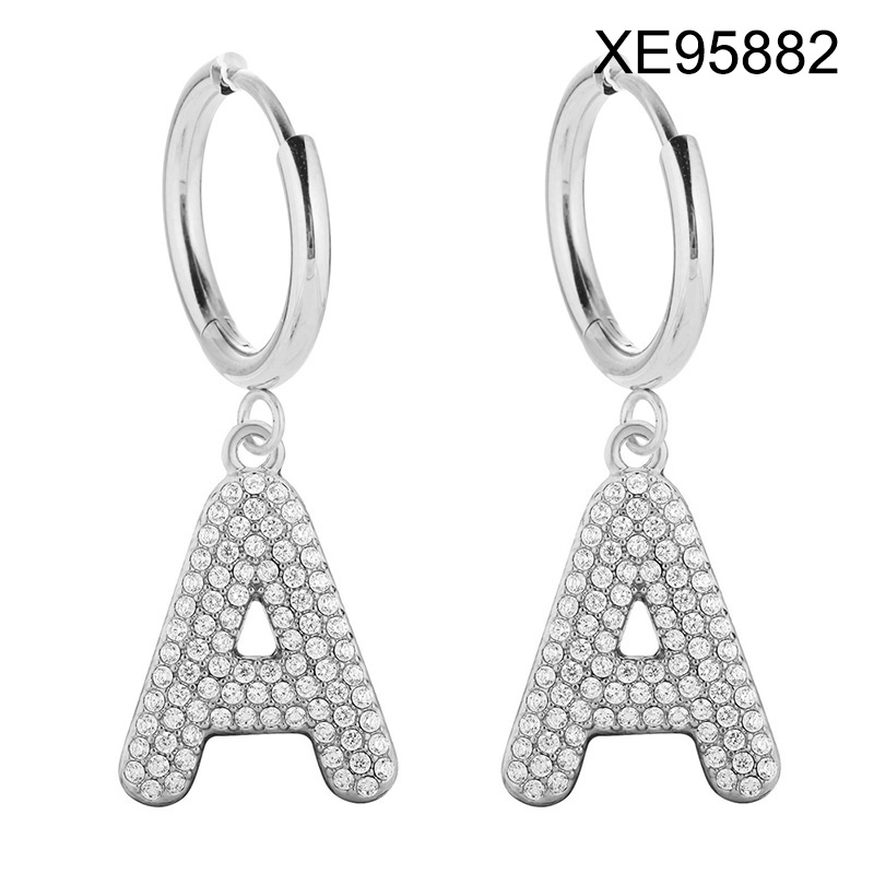 Level B Stainless Steel New Trendy Women Jewelry Letter A Steel color Hoop Earrings