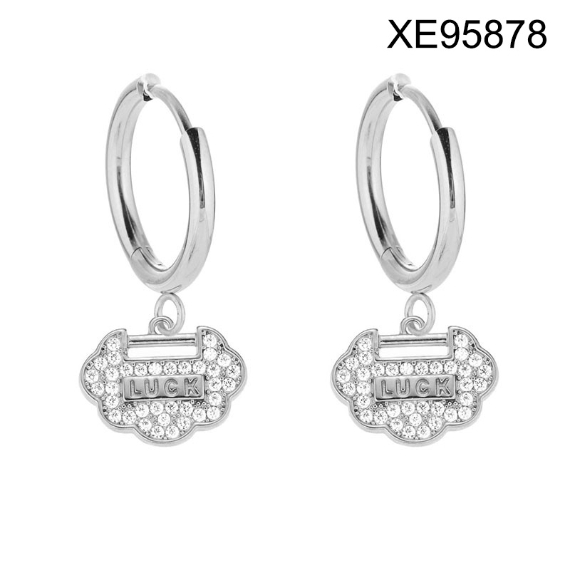 Level B Stainless Steel New Trendy Women Jewelry Lock Luck Steel color Hoop Earrings