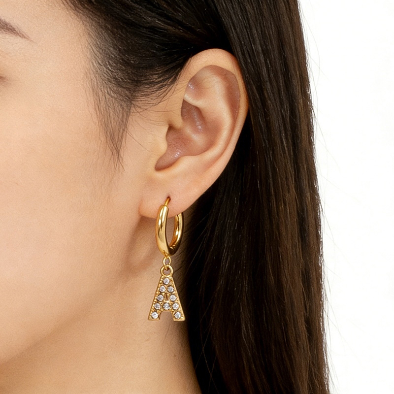 Level B Stainless Steel Jewelry New Trendy Sticky Stone Letter A Golden Hoop Earring