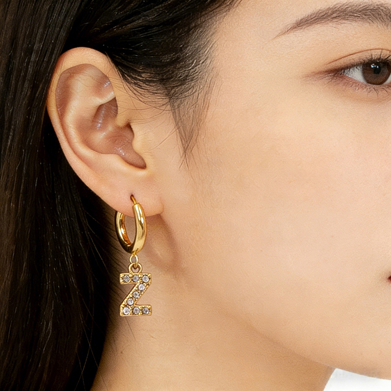 Level B Stainless Steel Jewelry New Trendy Sticky Stone Letter Z Golden Hoop Earring