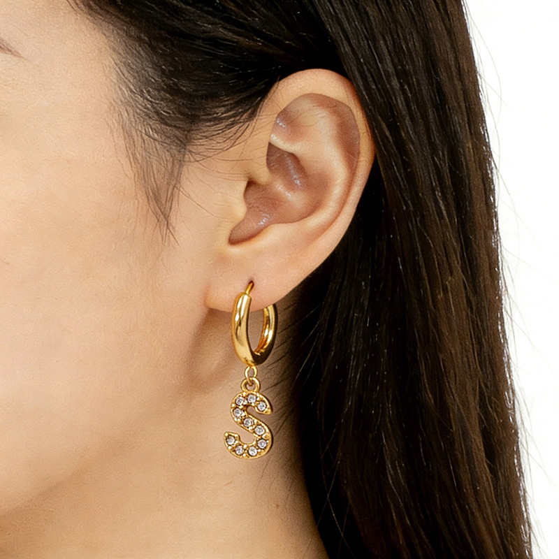 Level B Stainless Steel Jewelry New Trendy Sticky Stone Letter S Golden Hoop Earring