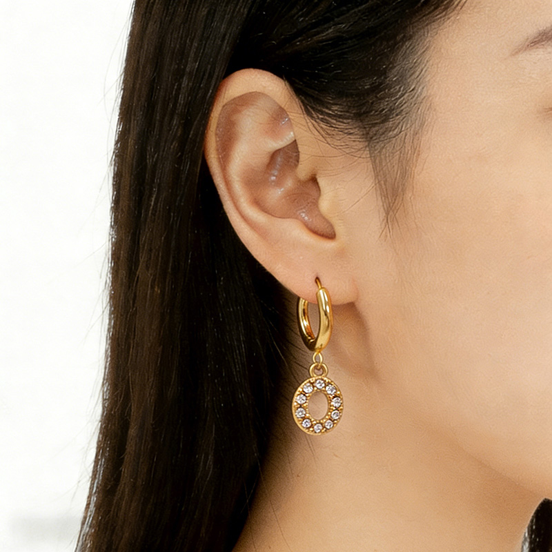 Level B Stainless Steel Jewelry New Trendy Sticky Stone Letter O Golden Hoop Earring