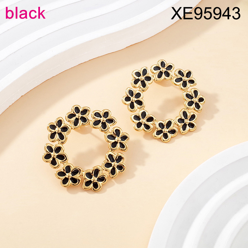 Level B Stainless Steel New Trendy Women Jewelry Drip Oil/Enamel Black Flower Golden Earrings