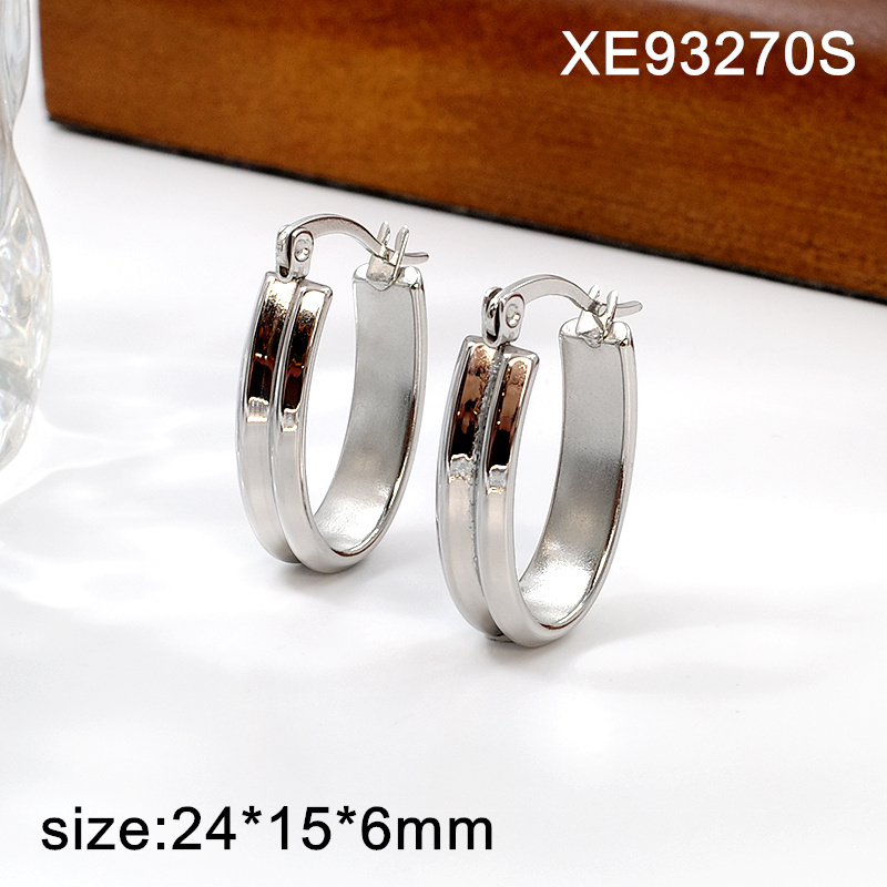 Level A Stainless Steel New Trendy Women Jewelry Oval Shape Steel color Hoop Earrings