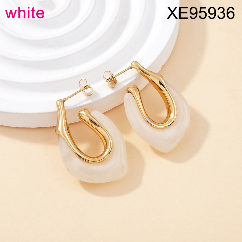 Level B Stainless Steel New Trendy Women Jewelry White Resin Geometry Golden Earrings