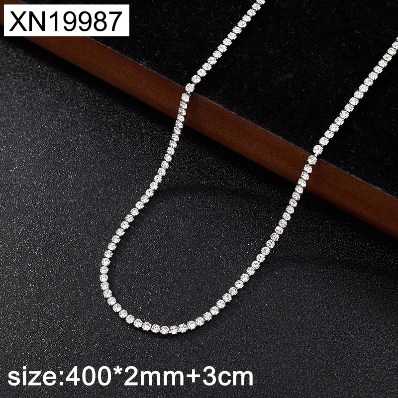 Level B Stainless Steel New Trendy Women Jewelry Round White Rhinestone Steel color Necklace