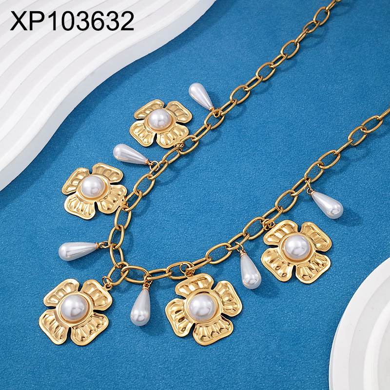 Level B Stainless Steel New Trendy Women Jewelry Pearl Style/Plastic Beads Flower Golden Pendant
