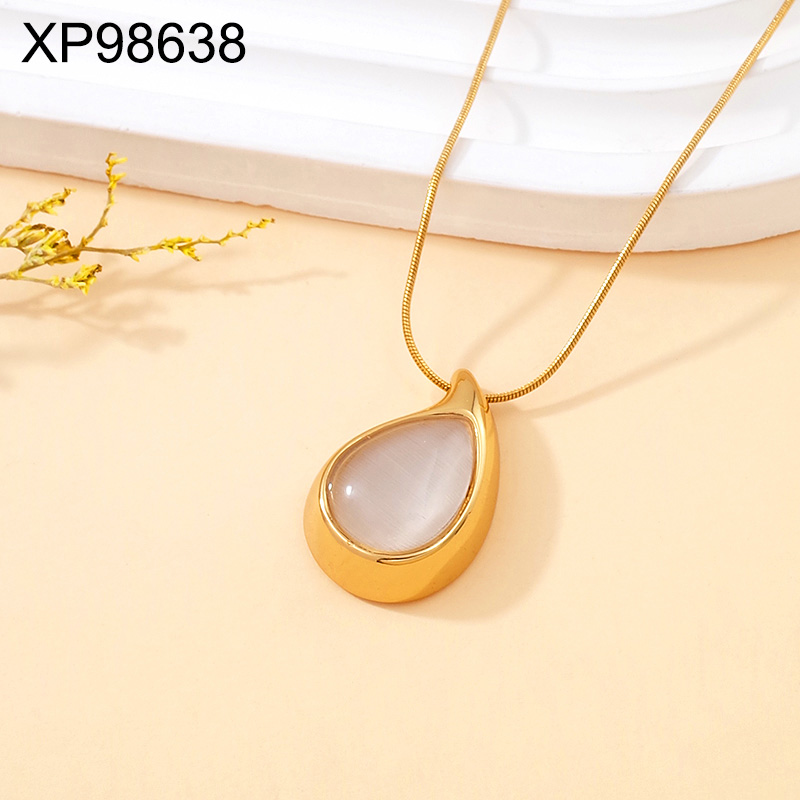 Level C Stainless Steel New Trendy Women Jewelry Opal Water Drip Golden Pendant