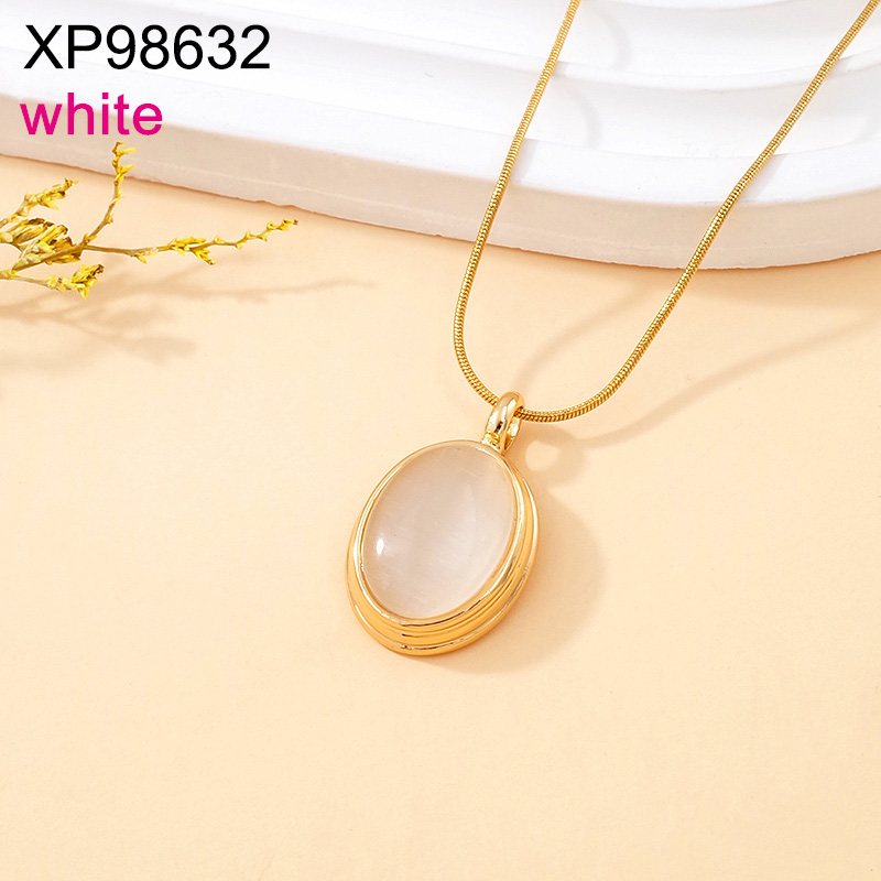 Level C Stainless Steel New Trendy Women Jewelry White Opal Oval Golden Pendant