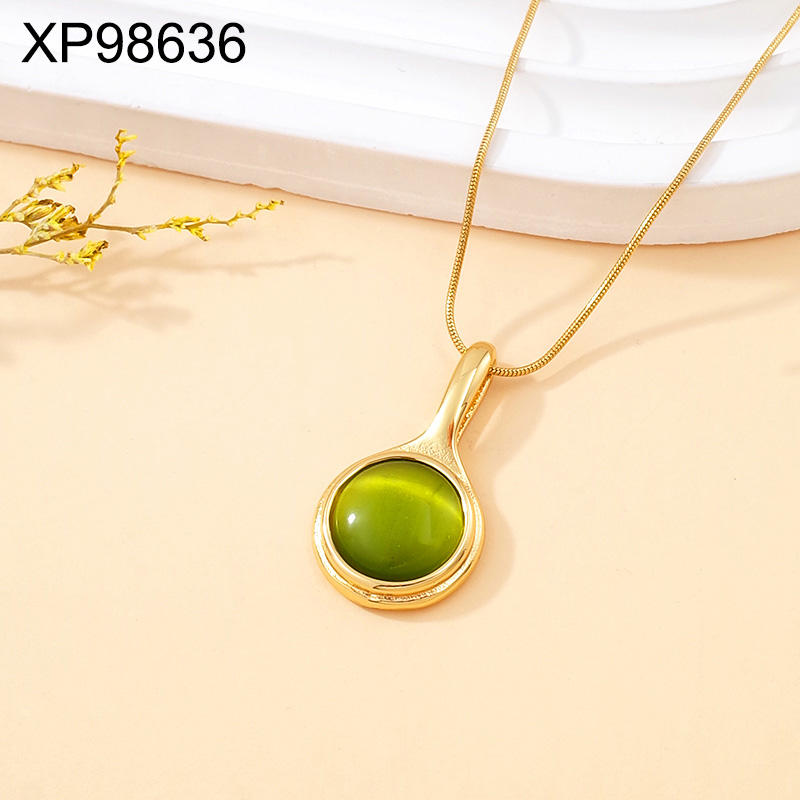 Level C Stainless Steel New Trendy Women Jewelry Green Opal Oval Golden Pendant