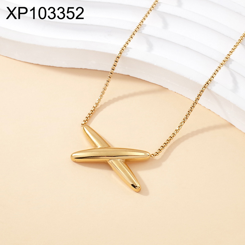 Level B Stainless Steel New Trendy Women Jewelry Intersection Golden Pendant