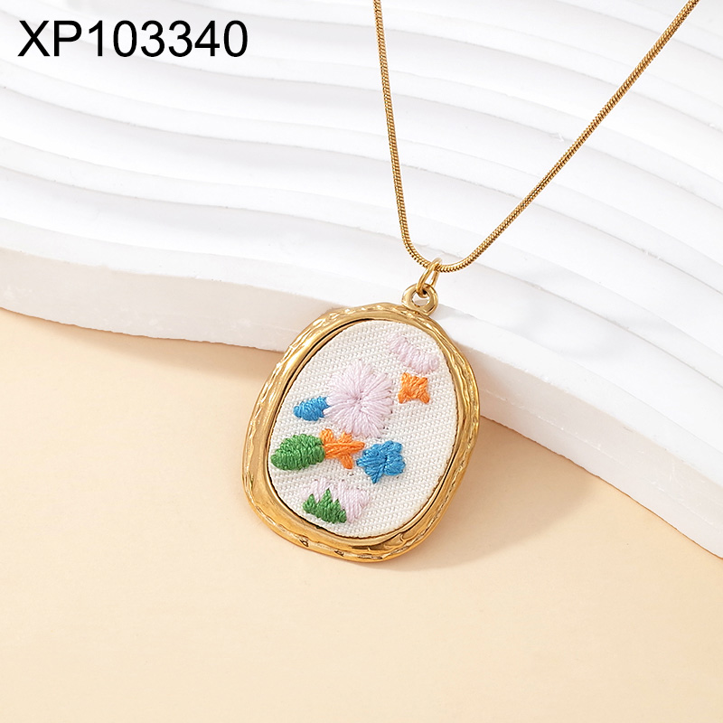 Level B Stainless Steel New Trendy Women Jewelry Oval Flower Golden Pendant