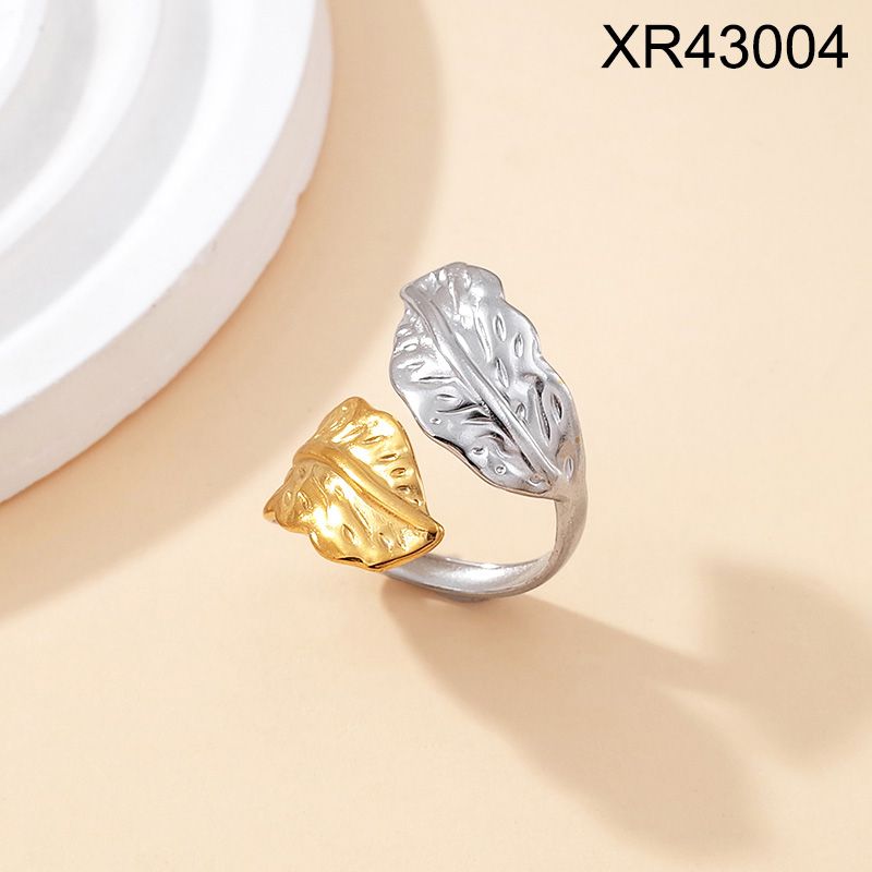 Level B Stainless Steel New Trendy Women Jewelry Leaf Two Tone Open Rings;Ring size can be adjusted freely