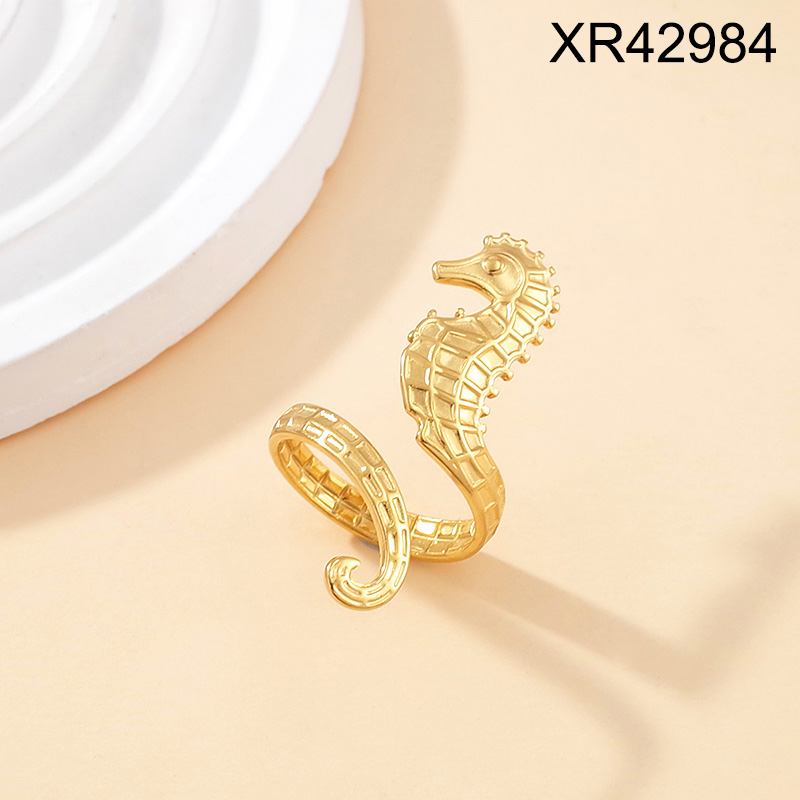 Level B Stainless Steel New Trendy Women Jewelry Summer beach Animal Seahorse Golden Open Rings;Ring size can be adjusted freely