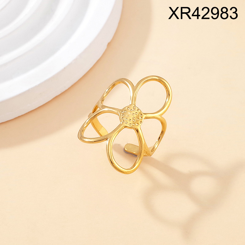 Level B Stainless Steel New Trendy Women Jewelry Flower Golden Open Rings;Ring size can be adjusted freely