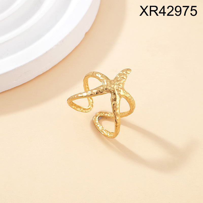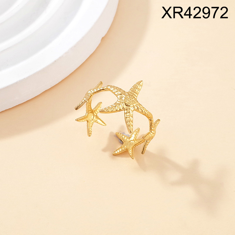 Level B Stainless Steel New Trendy Women Jewelry Summer beach Animal Starfish Golden Open Rings;Ring size can be adjusted freely