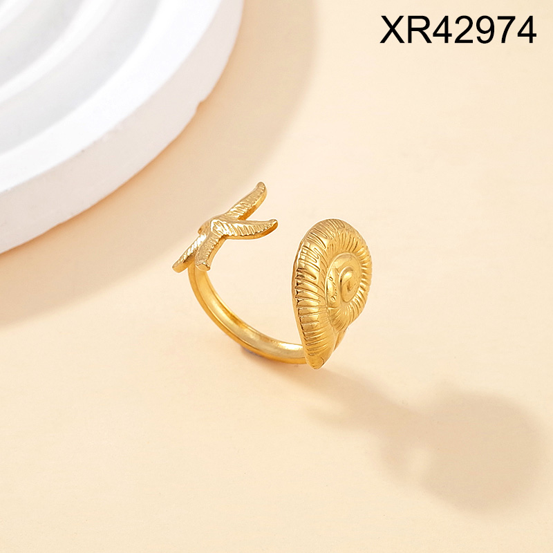 Level B Stainless Steel New Trendy Women Jewelry Summer beach Animal Starfish Conch Golden Open Rings;Ring size can be adjusted freely