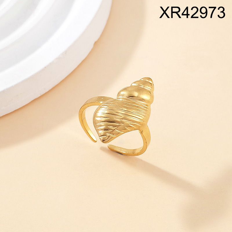 Level B Stainless Steel New Trendy Women Jewelry Summer beach Animal Conch Golden Open Rings;Ring size can be adjusted freely
