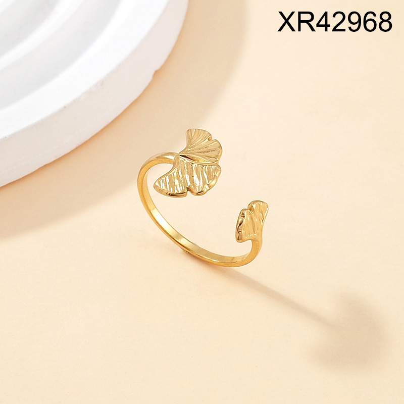 Level B Stainless Steel New Trendy Women Jewelry Ginkgo leaf Golden Open Rings;Ring size can be adjusted freely
