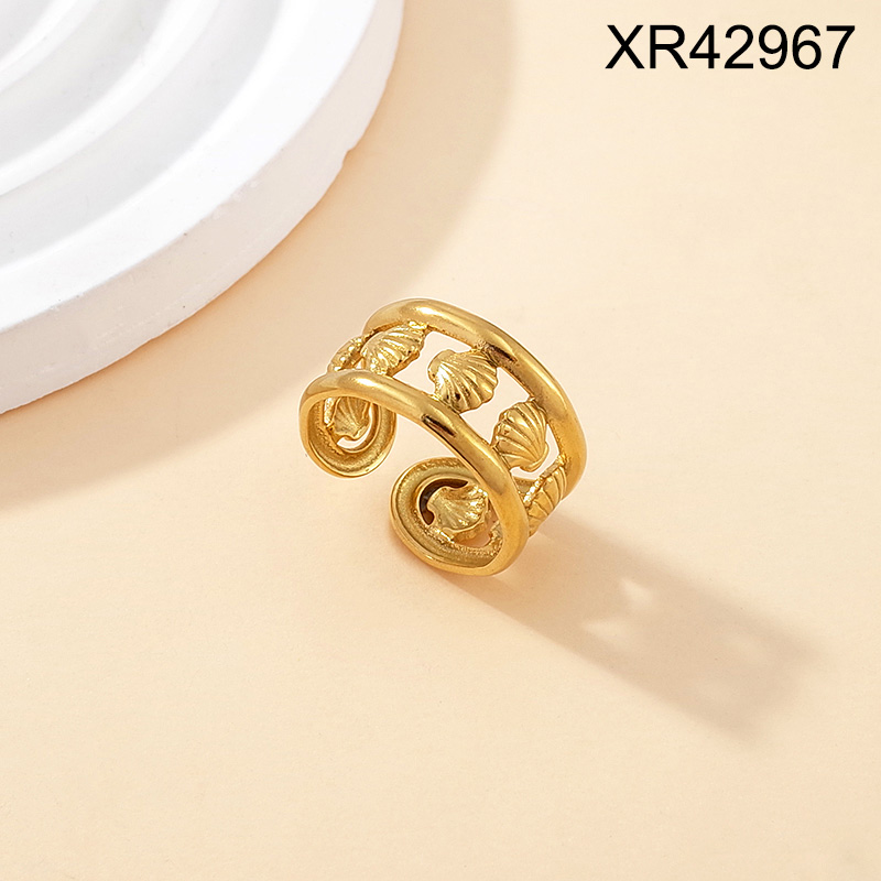 Level B Stainless Steel New Trendy Women Jewelry Summer beach Animal Shell Golden Open Rings;Ring size can be adjusted freely