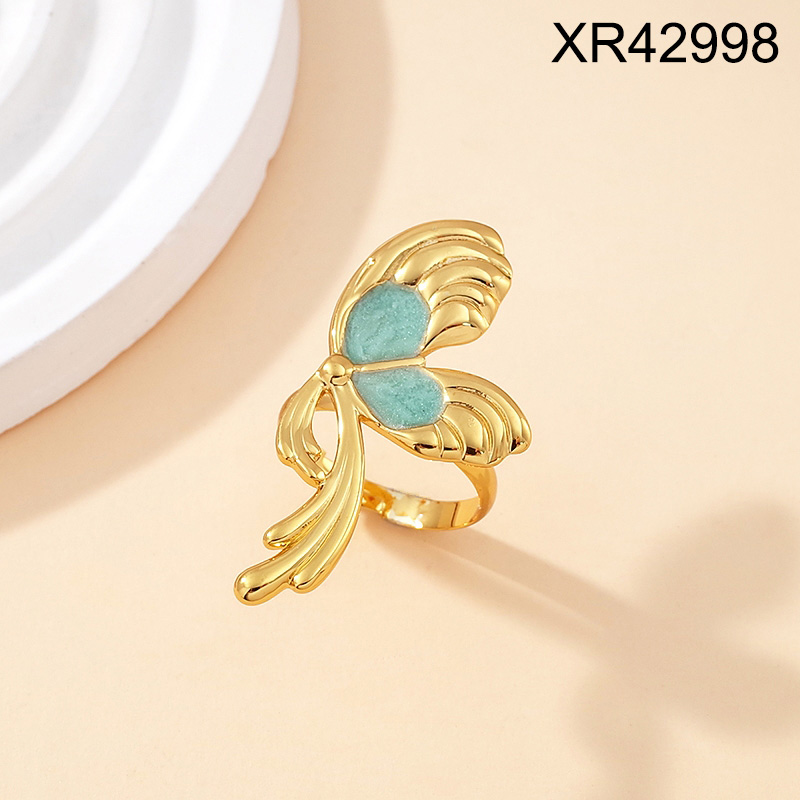 Level B Stainless Steel New Trendy Women Jewelry Drip Oil/Enamel Animal Butterfly Golden Open Rings;Ring size can be adjusted freely