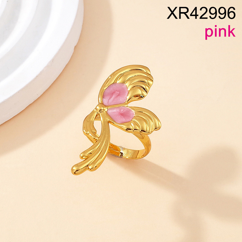 Level B Stainless Steel New Trendy Women Jewelry Drip Oil/Enamel Pink Animal Butterfly Golden Open Rings;Ring size can be adjusted freely